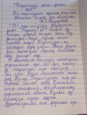 "Тәуелсіздік жолы-қасиетті жол" тақырыбында 9-10 сынып оқушылары эссе жазды.